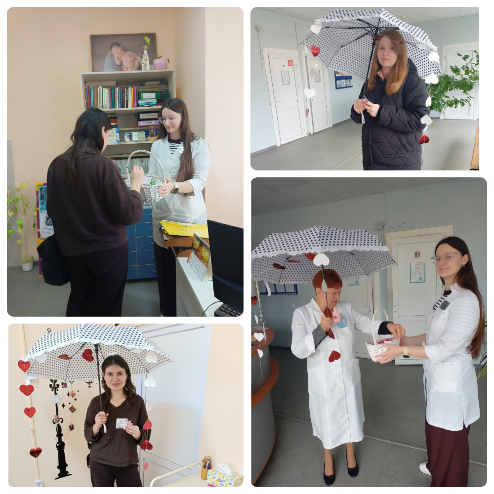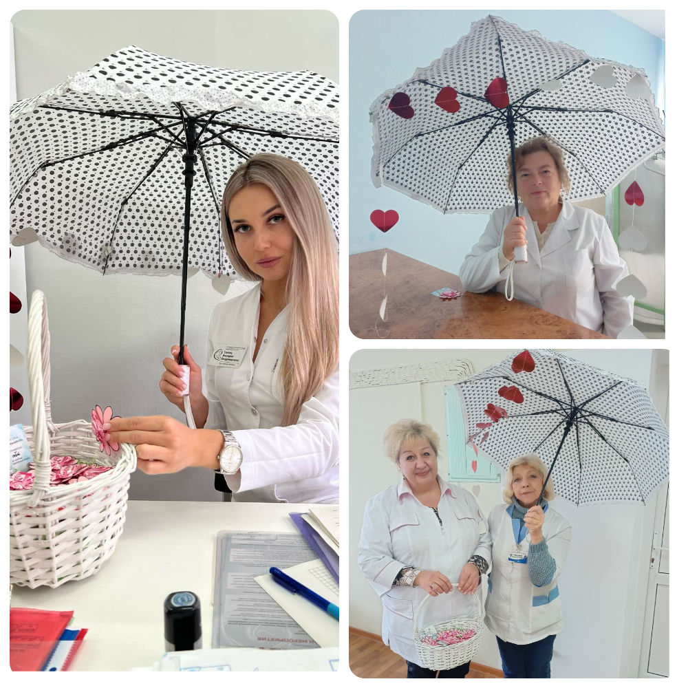 Сегодня 14.10.2025 отмечается день матери! В первой поликлинике психотерапевт Кивейша Дарья Юрьевна и психолог Войтюль Анастасия Станиславовна провели акцию «Под зонтом материнской любви». Наша акция объеденила всех мам: сотрудниц женской консультации, беременных, пришедших на занятие «Школы матери», пациенток. Цель акции заключается в укреплении чувства материнства, напоминании важной роли мамы в жизни каждого. Особое внимание уделялось укреплению женского здоровья, семейным ценностям, а так же теме аборта и его последствий для женщин.